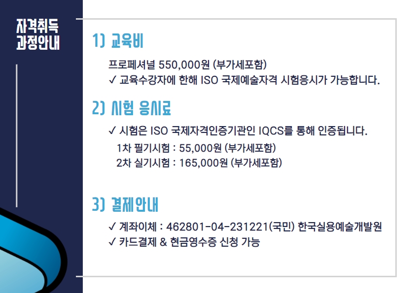 🔹 ±³À°³»¿ë: ISO ±¹Á¦¿¹¼úÀÚ°Ý ÇǾƳë¹ÝÁÖ ±³À°Àü¹®°¡ ÇÁ·ÎÆä¼Å³Î °úÁ¤ ÃëµæÀ» À§ÇÑ Ä¿¸®Å§·³